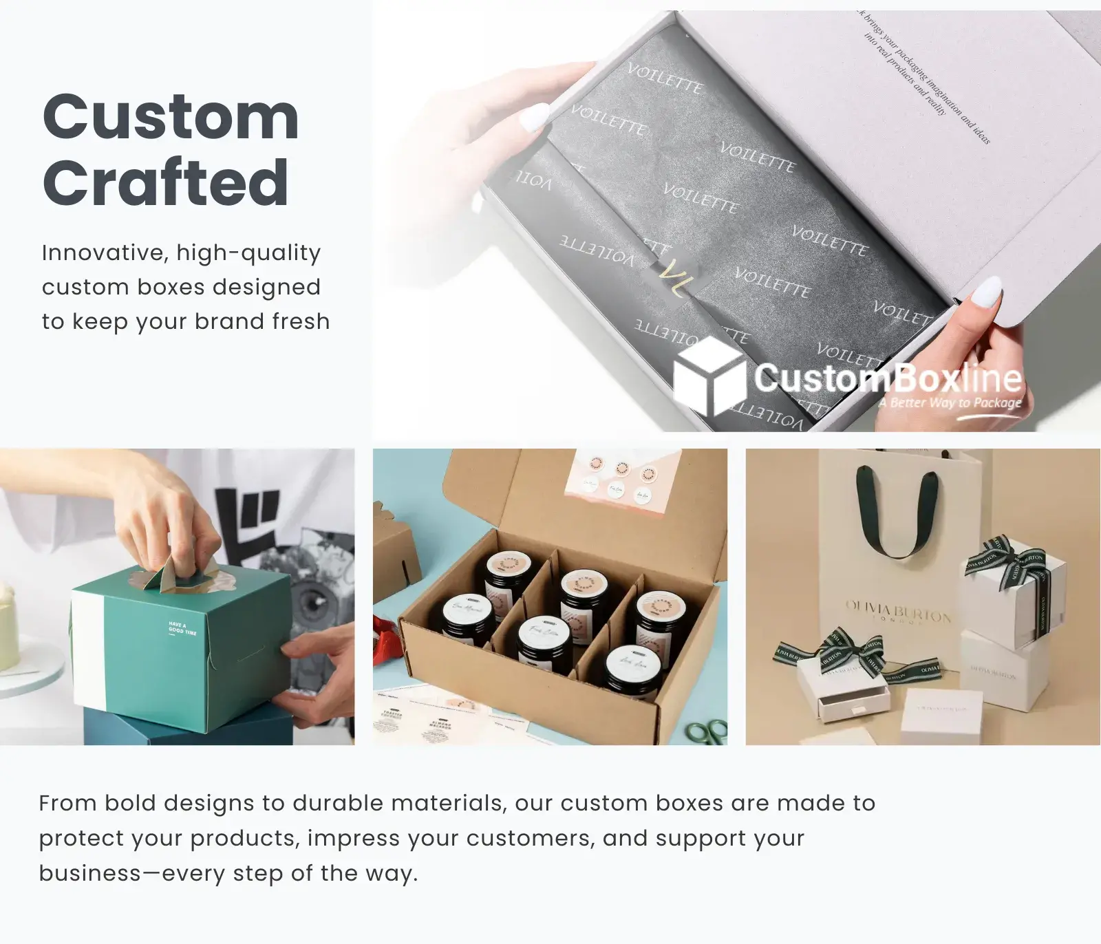 Custom boxes are customized packaging solutions explicitly tailored to individual businesses or brands’ branding and product requirements, featuring various sizes, shapes, materials, and printing options.